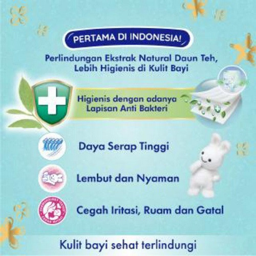 Merries skin protection merupakan popok pertama di Indonesia dengan kandungan ekstrak teh alami yang membuat popok lebih higienis di kulit bayi. Dengan technology hygiene protect, popok lebih higienis dengan adanya lapisan antibakteri. Popok sekali pakai (atau yang sering disebut pempers) yang teruji klinis cegah iritasi, ruam dan gatal pada kulit bayi. Perlindungan ekstra menjaga kulit bayi agar tetap sehat. Keunggulan : - Daya serap tinggi, menjaga kulit bayi tetap kering dengan 3 jalur penyerapan cairan tersebar rata, cepat kering, aman dari kebocoran - Bersirkulasi udara pada seluruh bagian popok meries, kulit bebas bernapas dan nyaman sepanjang hair - Lembut dan nyaman, bahan popok lembut Si Kecil tetap nyaman sepanjang hari