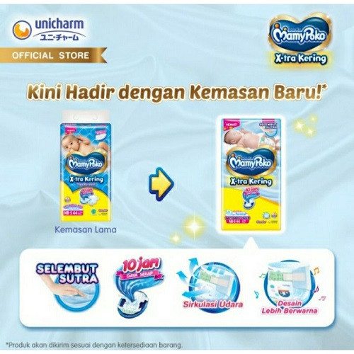 Mamy Poko Tipe Perekat X-tra Kering pilihan bunda untuk menjaga kulit si kecil tetap kering dan nyaman. Diciptakan dengan lapisan 10 jam daya serap dan 40x gel ekstra serap, sehingga menyerap lebih banyak, lebih cepat kering dan dapat digunakan lebih lama.