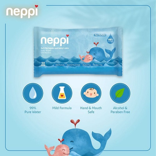 Neppi Baby Wipes Parfum terbuat dari bahan alami dengan kandungan Aloe Vera yang aman digunakan si Kecil sehingga dapat menjaga kelembutan kulitnya dengan wangi yang natural. Mampu membersihkan kotoran secara maksimal. Neppi Non Pafrum isi 50 lembar cocok digunakan untuk aktivitas si Kecil sehari- hari saat berada dilingkungan rumah.