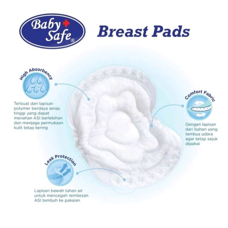 Baby safe breast pad adalah bantalan penyerap kelebihan air susu Ibu (ASI) agar tidak merembes dan membasahi pakaian Ibu. Terbuat dari lapisan polymer berdaya serap tinggi, menyerap dan menahan ASI berlebih sehingga menjaga kulit Ibu tetap kering.