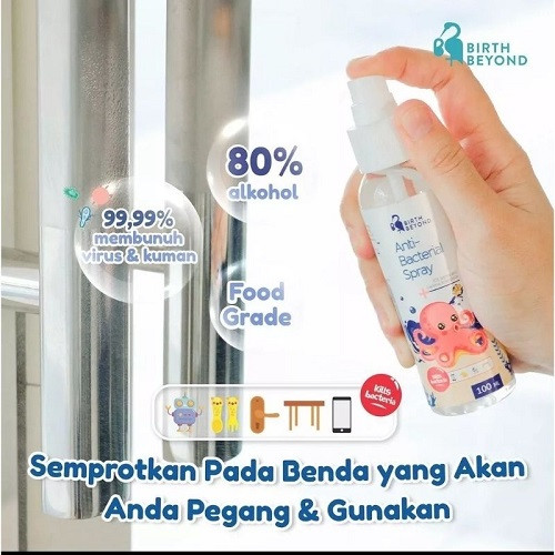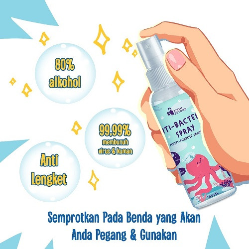 Anti-Bacterial Spray dengan kandungan Alkohol 80%, standar dunia dari WHO (World Health Organization) yang dapat membunuh virus dan kuman 99.99% dalam 30 detik. Dengan wangi segar cemara dan efek melembabkan, tidak membuat kulit menjadi kering. Sangat aman, bahkan pada kulit sensitif, ibu hamil dan menyusui. Berdasarkan penelitian di laboratorium kami, Anti-bacterial Spray efektif dalam memerangi dan menekan pathogen virus yang muncul di saat ini. Cara Penggunaan : semprotkan dengan jarak antara 10-15 cm, langsung usap hingga kering. Komposisi : Alcohol 80% w/w CPC 0.05%. Cara Penyimpanan : Simpan dibawah suhu 30 derajat celcius.