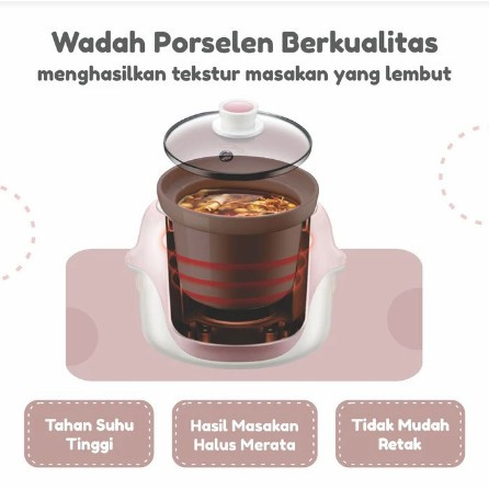 Emily slow cooker 1 liter (ESC-34003) adalah pengolah makanan multifungsi untuk membuat MPASI (Makanan Pendamping ASI) untuk anak, dan bisa juga digunakan untuk memasak menu makanan keluarga.