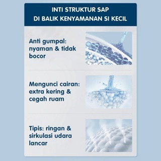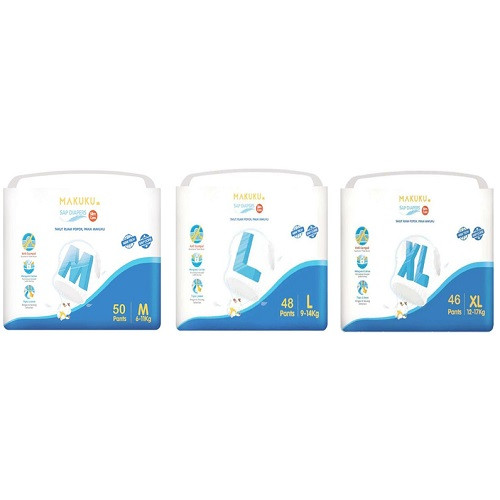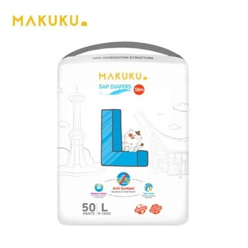 Makuku slim pants merupakan popok new generation SAP core structure pertama di Indonesia, dengan teknologi terbaru mempunyai struktur SAP sehingga tidak mudah menggumpal dan jatuh, serta membuat bayi leluasa saat bergerak. Daya serap tinggi, cairan akan cepat diserap merata sehingga melindungi pantat bayi dari iritasi. Keunggulan: - Tidak Menggumpal, penyerapan merata, sehingga mengurangi kebocoran dan memilki daya serap yang tinggi dan cepat, sehingga menjaga permukaan tetap kering dan mampu secara efektif mengurangi ruam merah pada kulit bayi. - Popok makuku slim memilki tebal hanya 1.6 mm, namun mempunyai daya serap yang tinggi, namun popok tidak menggumpal sehingga tidak terasa seperti memakai popok, mengurangi perasaan seperti ada benda asing, sehingga membuat kulit dan kaki bayi menjadi lebih nyaman untuk beraktivitas dan tidur nyenyak. - Penyerapan cepat, mengunci cairan dengan baik, tidak ada osmosis, mengurangi ruam merah. Ketika bayi duduk ataupun digendong, popok tidak akan osmosis balik. Tidak akan terjadi kebocoran pada semua sisi popok. - Lapisan permukaan 3D mengurangi kontak dengan kulit dan mepercepat penyerapan, serta meningkatkan sirkulasi udara hingga 60%. - Memiliki fitur wet indikator sehingga mempermudah parents untuk mengetahui apakah popok sudah penuh dan sebagai pengingat untuk mengganti popok. - Terdapat roll tape untuk membuang popok, hanya ada di popok makuku tipe celana.