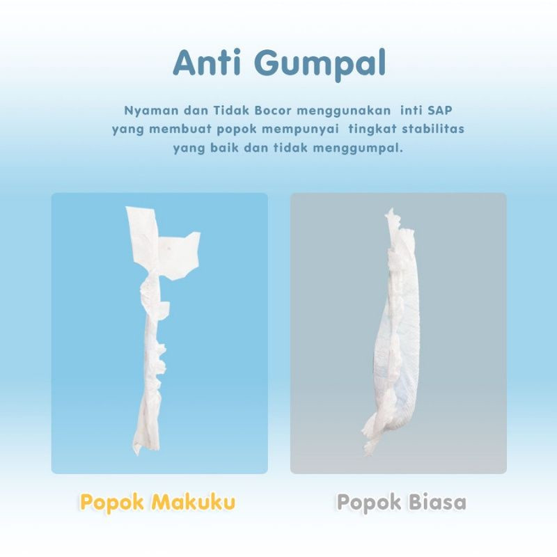 Makuku sap diapers comfort fit merupakan popok new generation SAP core structure pertama di Indonesia, popok generasi terbaru dengan struktur yang stabil membuat popok makuku tidak mudah menggumpal dan jatuh, serta membuat bayi tidak merasa berat saat bergerak. Penyerapan kecepatan tinggi membuat air yang masuk ke popok akan cepat diserap merata sehingga dapat melindungi pantat bayi dari iritasi. Keunggulan: - Tidak menggumpal, sehingga membuat bayi lebih nyaman - Penyerapan merata, sehingga mengurangi kebocoran - Daya serap yang tinggi dan cepat, sehingga menjaga permukaan tetap kering dan mampu secara efektif mengurangi ruam merah pada kulit bayi. - Penyerapan cepat, mengunci cairan dengan baik, tidak ada osmosis dan mengurangi ruam merah. - Popok 3 lapis, celana pull-up tiga lapis yang dilapisi dengan karet elastis di sekitar pinggang, dan bagian tepi di tutupi dengan karet elastis yang lebih fleksible mengikuti berbagai bentuk postur tubuh bayi guna meminimalisir terjadinya kebocoran samping. - Memiliki fitur Wet Indikator sehingga mempermudah parents untuk mengetahui apakah popok sudah penuh dan sebagai pengingat untuk mengganti popok.