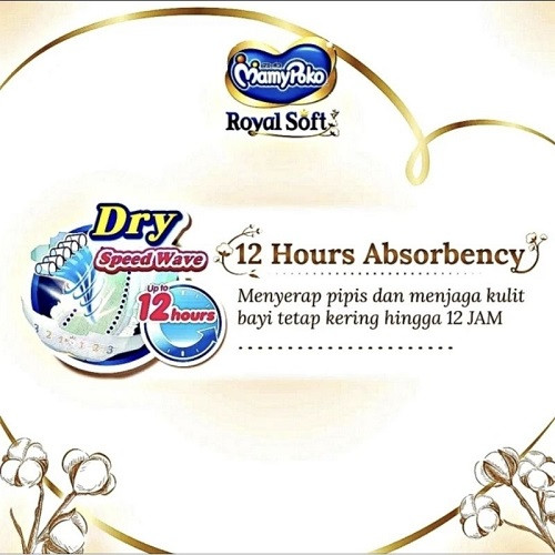 Mamypoko extra soft hadir dengan teknologi baru yang dapat memberikan sentuhan terlembut untuk kulit sensitif si kecil. Lapisan lembut pada popok ini memberikan kenyamanan penggunaan seharian. Sementara daya penyerapan tinggi pada popok ini dapat membantu mencegah bocor hingga 5 gelas penyerapan. Dengan ini, si kecil dapat tidur dengan nyenyak semalaman dan tidak terganggu. Extra Soft : Kelembutan ekstra pada Mamypoko dapat memberikan kenyamanan ekstra untuk digunakan si kecil seharian. Popok ini dapat memberikan perlindungan dan kenyamanan hingga 12 jam lamanya. Lapisan kering bergelombang dapat membantu memberikan penyerapan pipis lebih baik sehingga kulit si kecil tetap kering terjaga. Penyerapan pipis ini menggunakan teknologi extra dry speed wave untuk penyerapan lebih banyak. Detail : - Tipe: Tape - Ukuran : S60, M56, L48 - Untuk berat: S 3 - 8kg, M 6 - 11kg, L 9 - 14kg - Kelembutan ekstra untuk perlindungan ekstra 12 jam - Dry Speed Wave membantu menyerap dengan lebih banyak dan cepat Keunggulan : - 5 Gelas Penyerapan - Penyerapan 12 Jam - Bersikulasi Udara - Selembut Kapas - Indikator Pipis - Ban Pinggang Nyaman Berlekuk