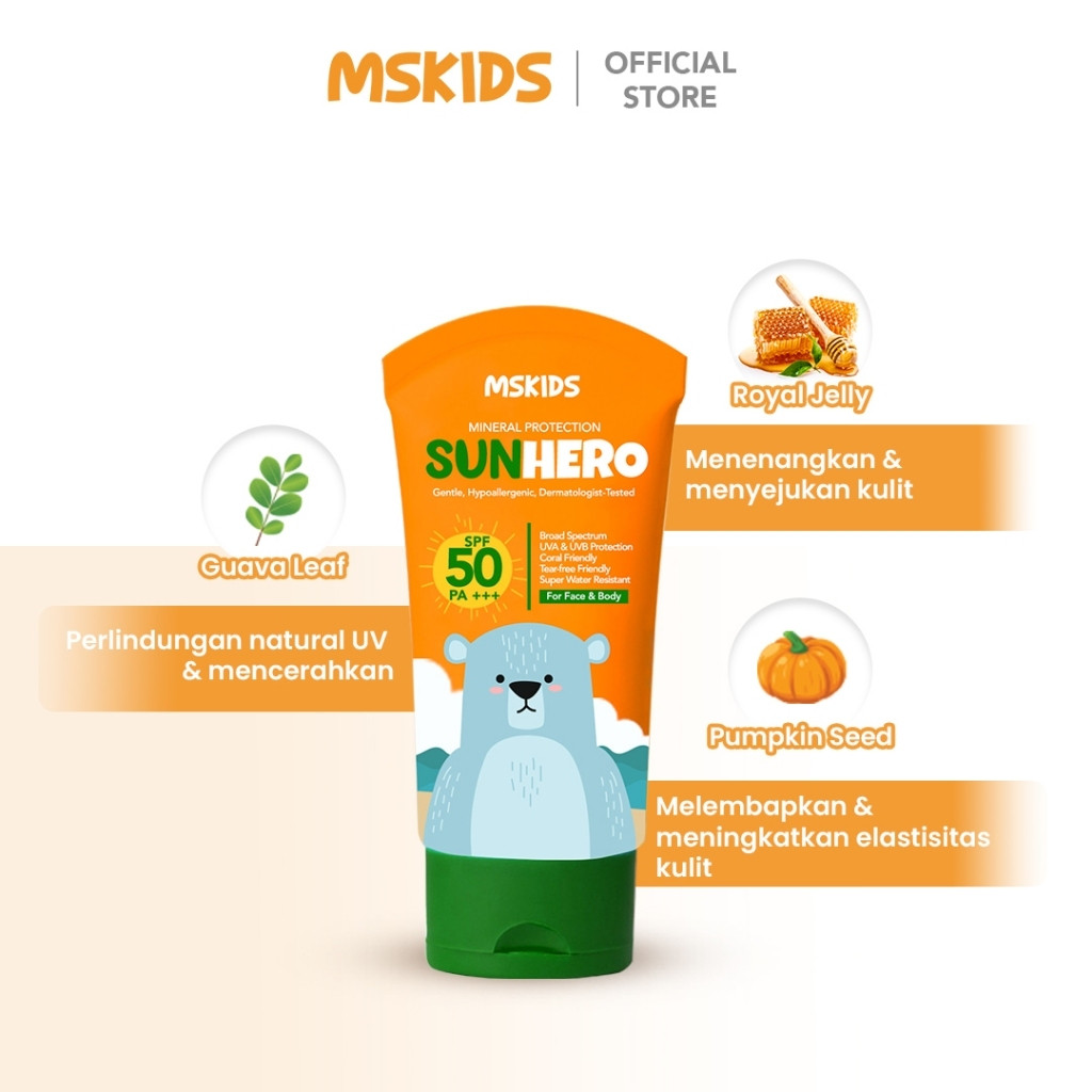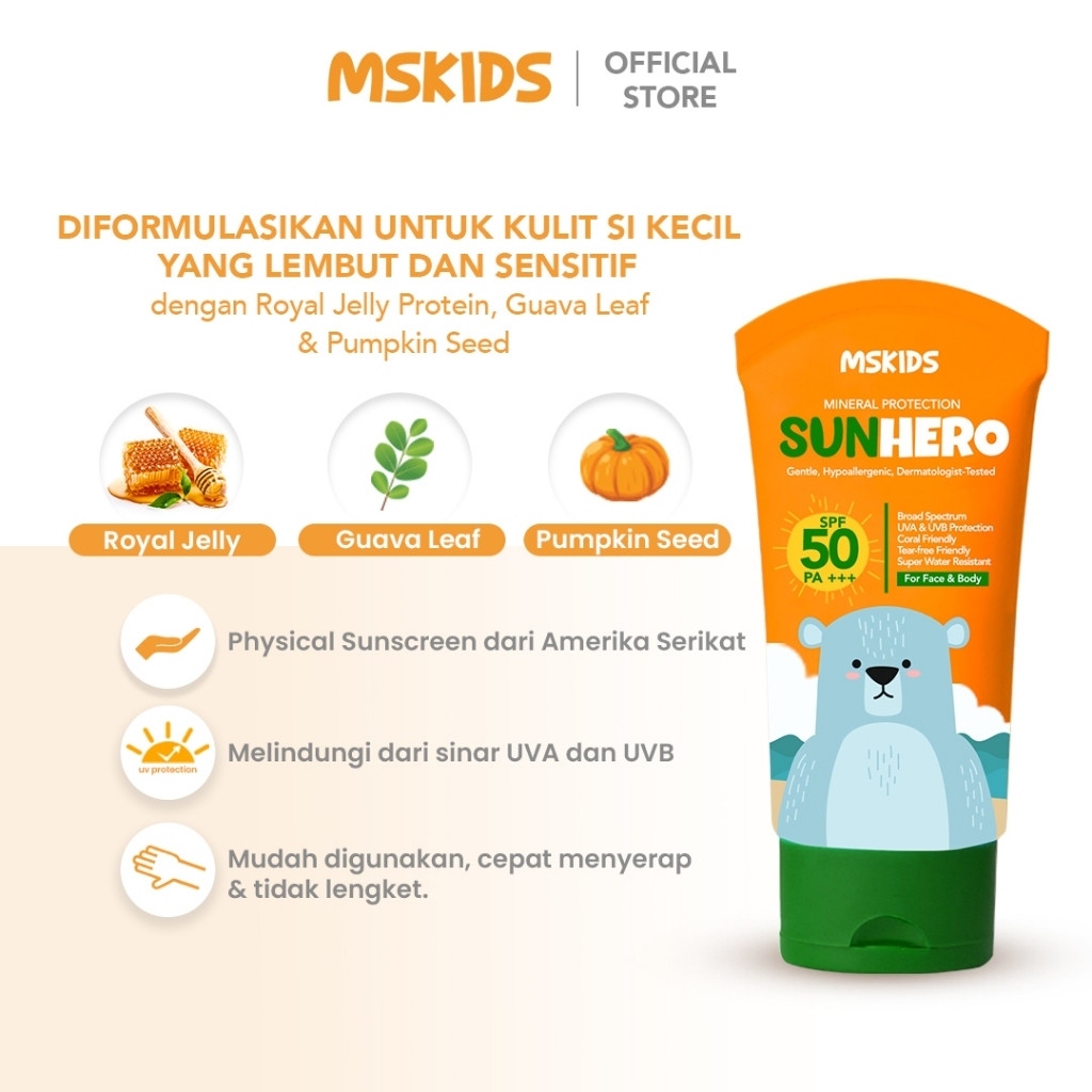MSKIDS Sunscreen Sunbae & Sunhero Physical Sunscreen SPF30 PA+++ & SPF50 PA+++ - Sunscreen Anak, Water Resistant , Tabir Surya, Suncare, Sunblock, Fragrance Free