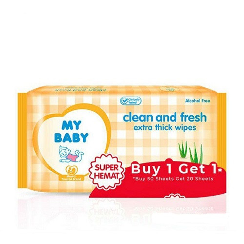 My Baby Extra Care Tissue Basah [50 Sheets + 50 Sheets] adalah tisu basah ekstra tebal dan teruji klinis untuk membersihkan secara maksimal setelah bayi buang air atau saat mengganti popok, setelah bayi makan, bermain, serta dalam perjalanan. Praktis dan higienis sebagai pengganti air