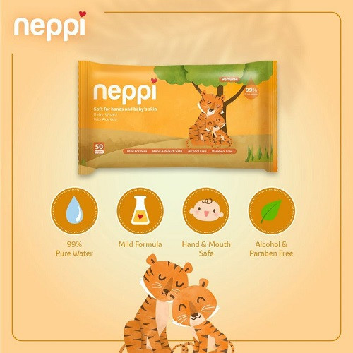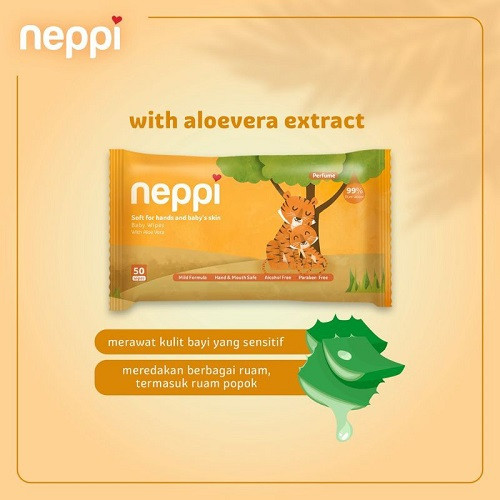 Neppi Baby Wipes Parfum terbuat dari bahan alami dengan kandungan Aloe Vera yang aman digunakan si Kecil sehingga dapat menjaga kelembutan kulitnya dengan wangi yang natural. Mampu membersihkan kotoran secara maksimal. Neppi Pafrum isi 50 lembar cocok digunakan untuk aktivitas si Kecil sehari- hari saat berada dilingkungan rumah.