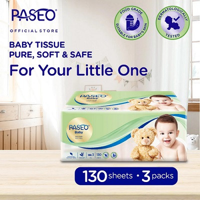 Tisu paseo baby pure soft dibuat khusus untuk kulit bayi yang lembut. Memiliki ekstra ketebalan dan 3x lebih lembut sehingga nyaman untuk kulit bayi. Food grade sehingga dapat bersentuhan dengan makanan dan mulut bayi serta perlengkapan makan dan minumannya. Teruji secara dermatologi dapat digunakan untuk kulit bayi yang sensitif dan tidak menimbulkan alergi pada kulit bayi.