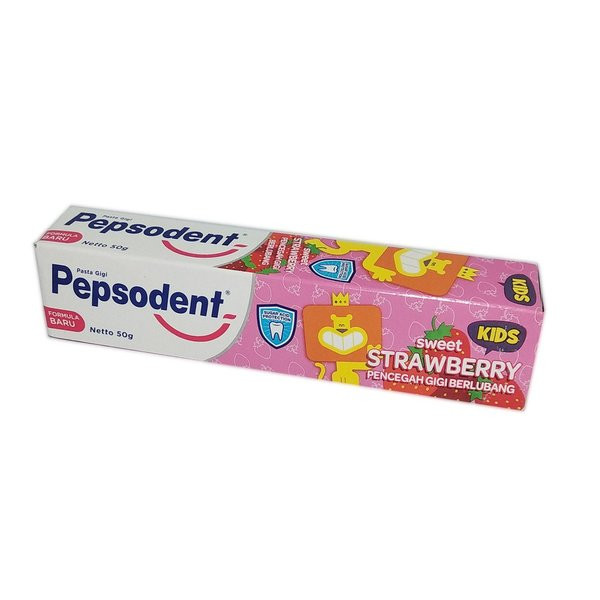 Pepsodent Kids Sweet Strawberry, mengandung Fluoride aktif yang membantu melindungi gigi dari asam yang terbentuk dari penguraian gula oleh mikroba yang dapat memicu gigi berlubang.