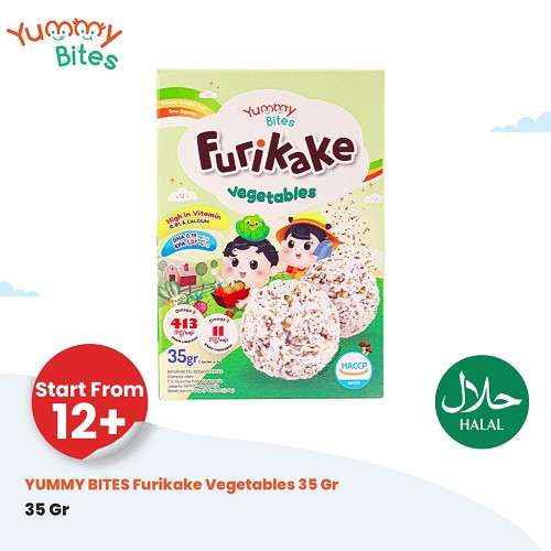 Yummy bites furikake dapat dikonsumsi si Kecil mulai umur 12 bulan. Mengandung DHA & EPA serta omega 3 & omega 6 yang baik untuk pertumbuhan si kecil. Keunggulan : - Tinggi akan vitamin D, B1 dan Kalsium - Rasa gurih lezat cocok disajikan sebagai lauk dengan nasi putih, bubur, sup, dll. - Tanpa pengawet, pemanis buatan & pewarna sintetis - Penggunaan sangat praktis & mudah untuk dikreasikan