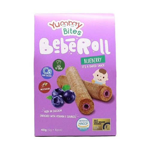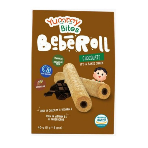 Makanan selingan atau snack sereal untuk bayi usia 9 bulan ke atas. Kemasan yang mudah digenggam sehingga aman untuk bayi yang ingin makan sendiri. Selain itu yummy bites beberoll lebih sehat karena prosesnya yang dipanggang, tinggi kalsium untuk memperkuat kepadatan tulang dan gigi dan juga mengandung vitamin E melimpah untuk menjaga sistem imun tubuh si kecil. Varian Rasa : - Cheese Komposisi: Sereallia 55,089% (beras coklat, beras putih, jagung, barley, ketan putih, kacang hitam, millet, beras hitam), minyak kelapa sawit, bubuk keju 15% , bubuk susu skim, tokoferol, gula, garam laut Korea alami, kalsium karbonat, mengandung susu dan telur). - Strawberry Komposisi: Sereallia 55,089% (beras coklat, beras putih, jagung, barley, ketan putih, kacang hitam, millet, beras hitam), minyak kelapa sawit, bubuk strawberry 15% , bubuk susu skim, tokoferol, gula, garam laut Korea alami, kalsium karbonat, mengandung susu dan telur). - Blueberry Komposisi: Sereallia 55,089% (beras coklat, beras putih, jagung, barley, ketan putih, kacang hitam, millet, beras hitam), minyak kelapa sawit, bubuk blueberry 15% , bubuk susu skim, tokoferol, gula, garam laut Korea alami, kalsium karbonat, mengandung susu dan telur). - Orange Berat 40 gram. 1 kemasan terdiri dari 8 roll @ 5 gram. - Banana Berat 40 gram. 1 kemasan terdiri dari 8 roll @ 5 gram. - Chocolate Berat 40 gram. 1 kemasan terdiri dari 8 roll @ 5 gram.