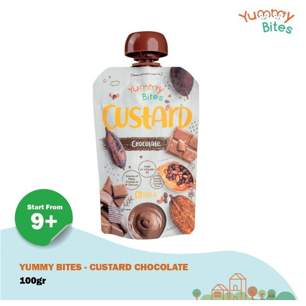 Yummy bites custard adalah makanan untuk si kecil mulai usia 9 bulan. Produk perpaduan susu & cocoa dan bahan yang digunakan dipilih dengan kondisi yg cocok untuk bayi (baby-grade ingredients). Keunggulan : - Sumber D & kalsium - Tinggi akan vitamin B1 - Mengandung vitamin A, zat besi & magnesium - Tanpa tambahan garam - Tanpa pengawet, pewarna & pemanis - Bebas Gluten Cara Penyajian : - Kocok terlebih dahulu sebelum dibuka. - Konsumsi terbaik untuk segera dihabiskan setelah dibuka. Varian Rasa : - Custard Chocolate 100g - Greek Yogurt Passion Fruit Mango, Apple & Banana 100g Greek Yogurt Vanilla, Apple & Banana 100g